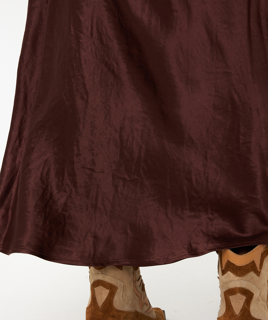 Elegantne pikk seelik, mis on valmistatud pehmest ja läikivast kangast. Seeliku rikkalik läige toob esile selle peene tekstuuri, luues luksusliku ja stiilse välimuse, mis sobib ideaalselt nii pidulikeks kui ka igapäevasteks sündmusteks.