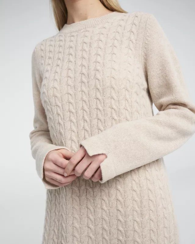 Klassikaline kootud kleit. Kleidi alläärel ja varrukate äärtes on lõhikud. Kleit, mis sobib kanda nii pükste peal pika kampsunina või kleidina.