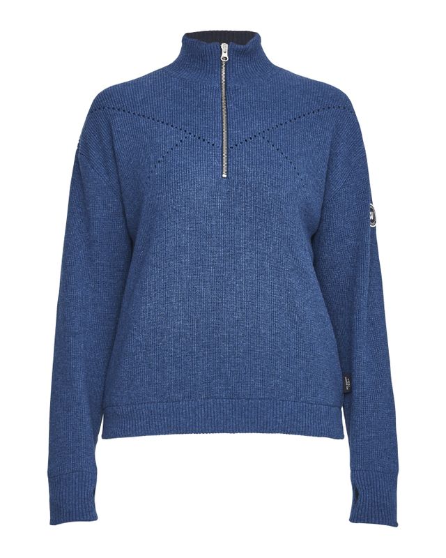 Kootud sviiter tuulekindla voodriga. Kõrgem krae metallist lukuga. Pikendatud varrukad pöidlaaukudega.