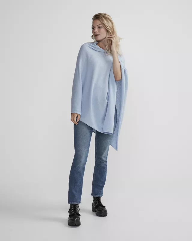 Kootud poncho eriti peenest meriinovillast viimistlemata servadega. Seda saab kanda ja sobitada mitmel erineval viisil. Lõng on märgistatud Woolmarki kvaliteedimärgiga, mis garanteerib, et toode on valmistatud 100% puhtast villast, mis vastab kvaliteedistandarditele. Jätkusuutlikult toodetud Euroopas.