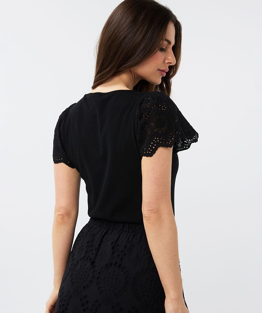 Naiselik ja mugav top laiemate broderii kangast varrukatega. Sobib kokku Chiffly seelikuga.
