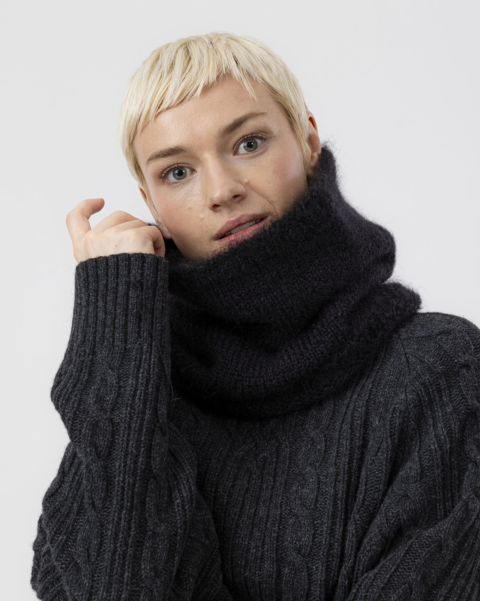 Pehme mohäärisegust kootud kaelus, mis sobib sügis- ja talveilmadeks.