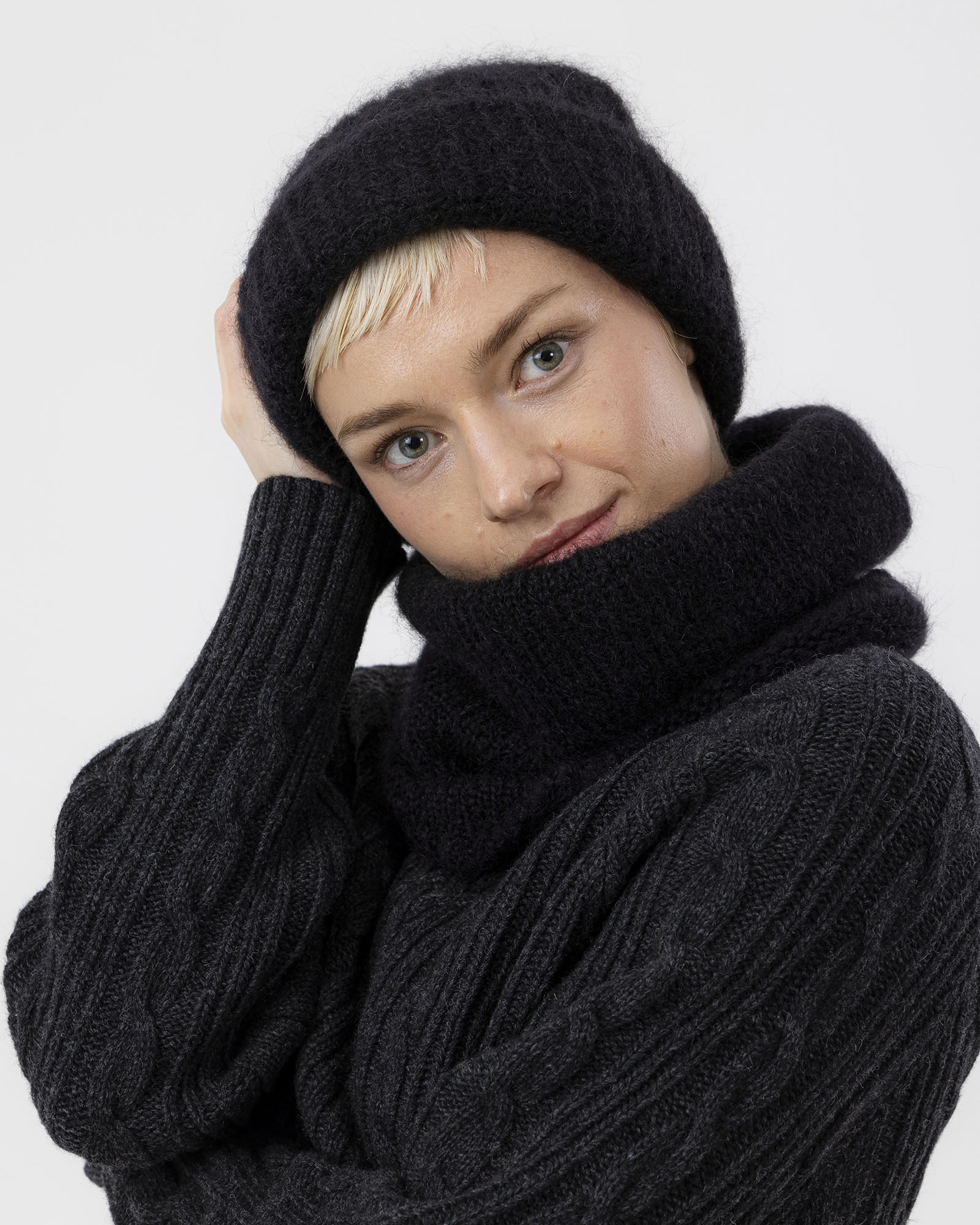 Pehme mohäärisegust kootud müts, mis sobib sügis- ja talveilmadeks.