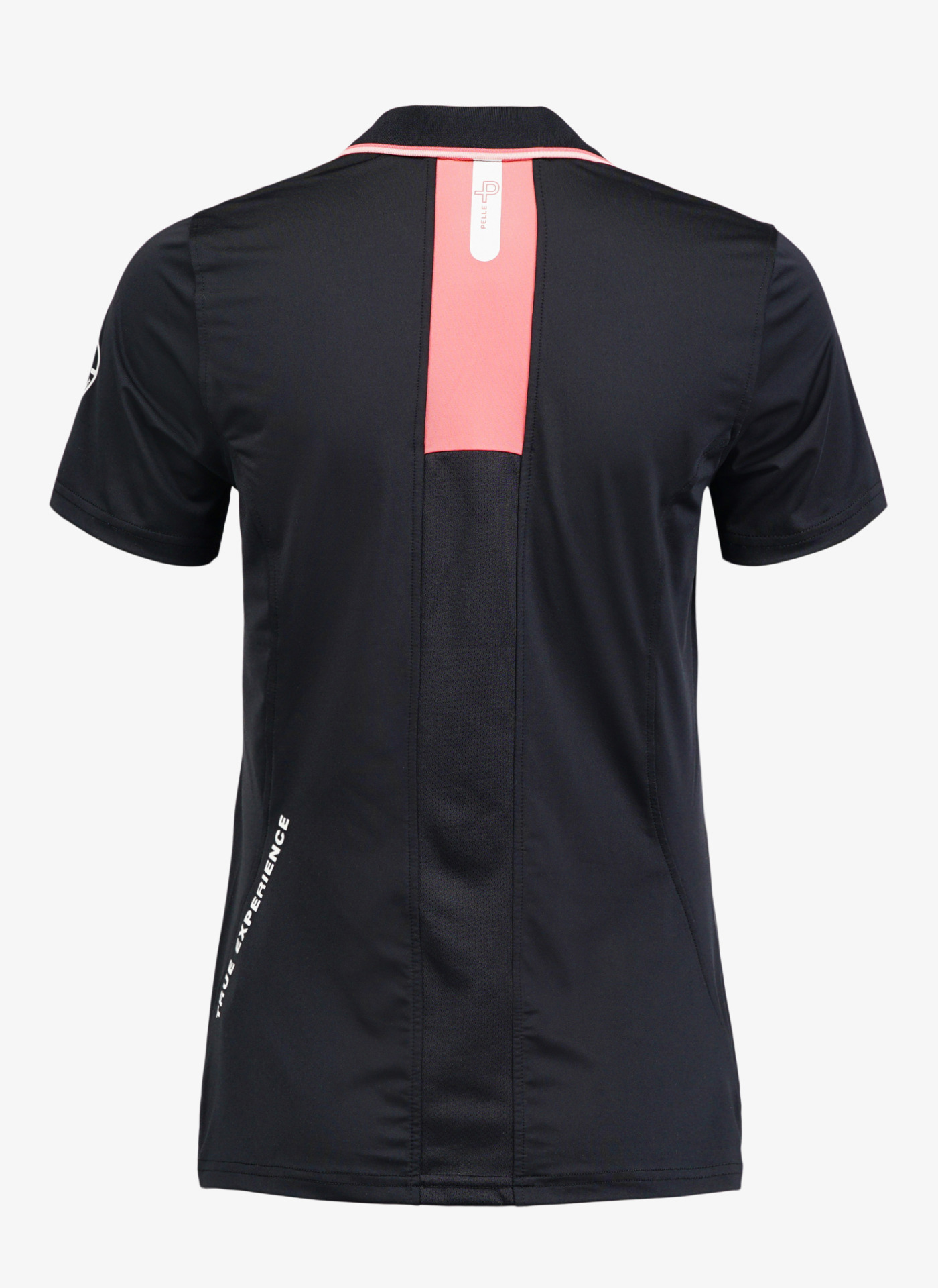 Lühikeste varrukatega sportlik naiste polo. Ideaalne golfiväljakul, merel või intensiivseks treeninguks jõusaalis. Särgil on kontrastset värvi küljepaneelid külgedel ja kaeluses ning võrkdetail taga. Polol on mitu helkurdetaili, mis tagavad maksimaalse nähtavuse hämaras või pimedas.