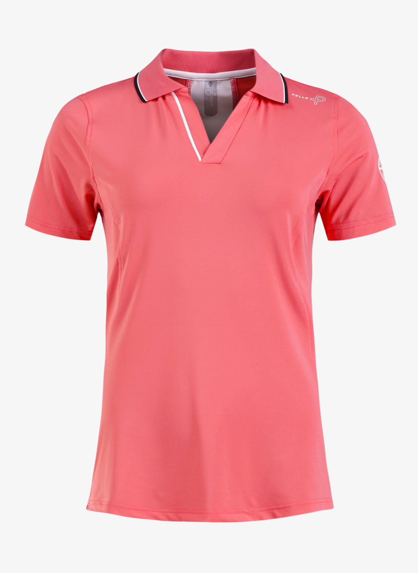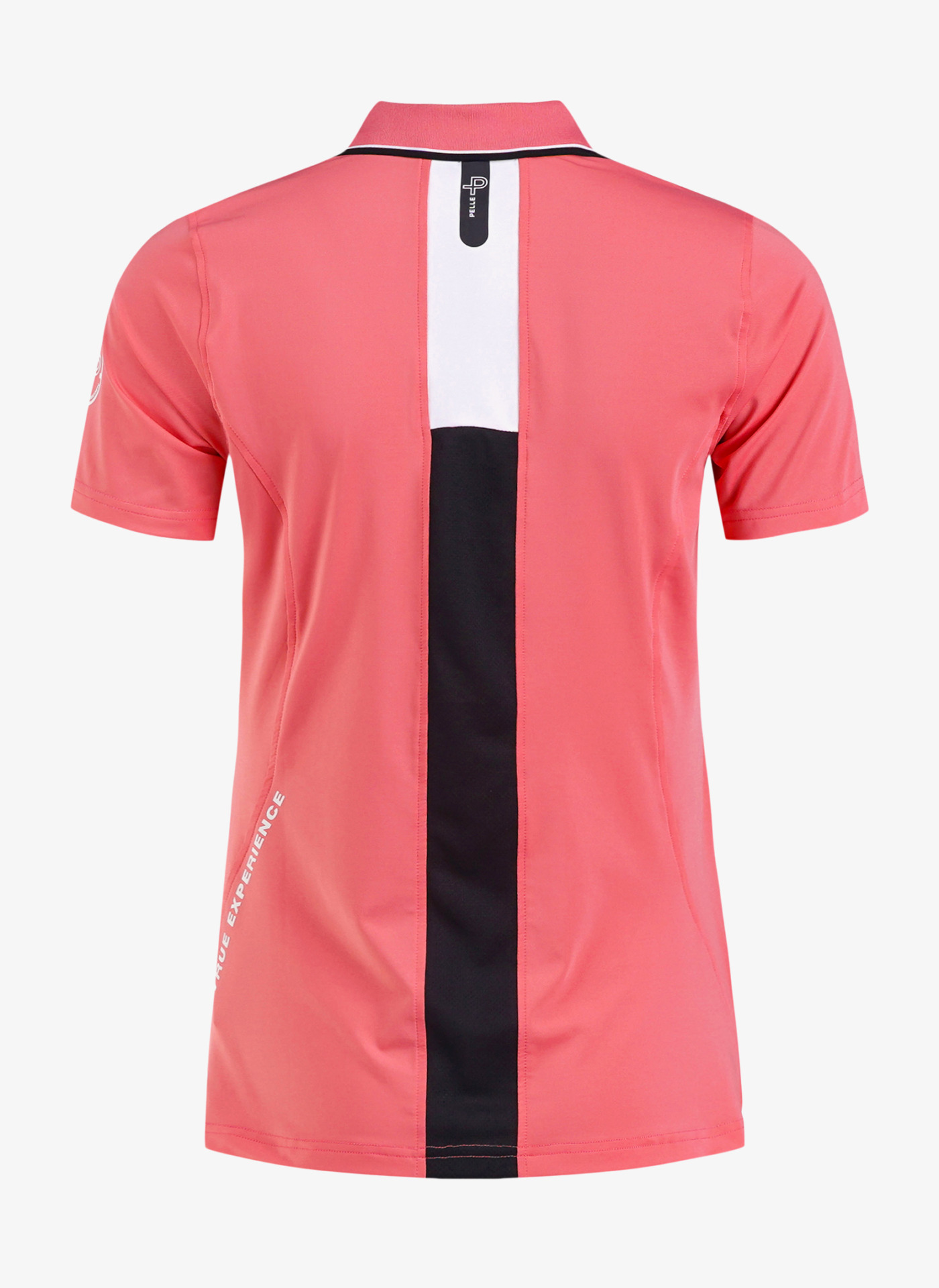 Lühikeste varrukatega sportlik naiste polo. Ideaalne golfiväljakul, merel või intensiivseks treeninguks jõusaalis. Särgil on kontrastset värvi küljepaneelid külgedel ja kaeluses ning võrkdetail taga. Polol on mitu helkurdetaili, mis tagavad maksimaalse nähtavuse hämaras või pimedas.