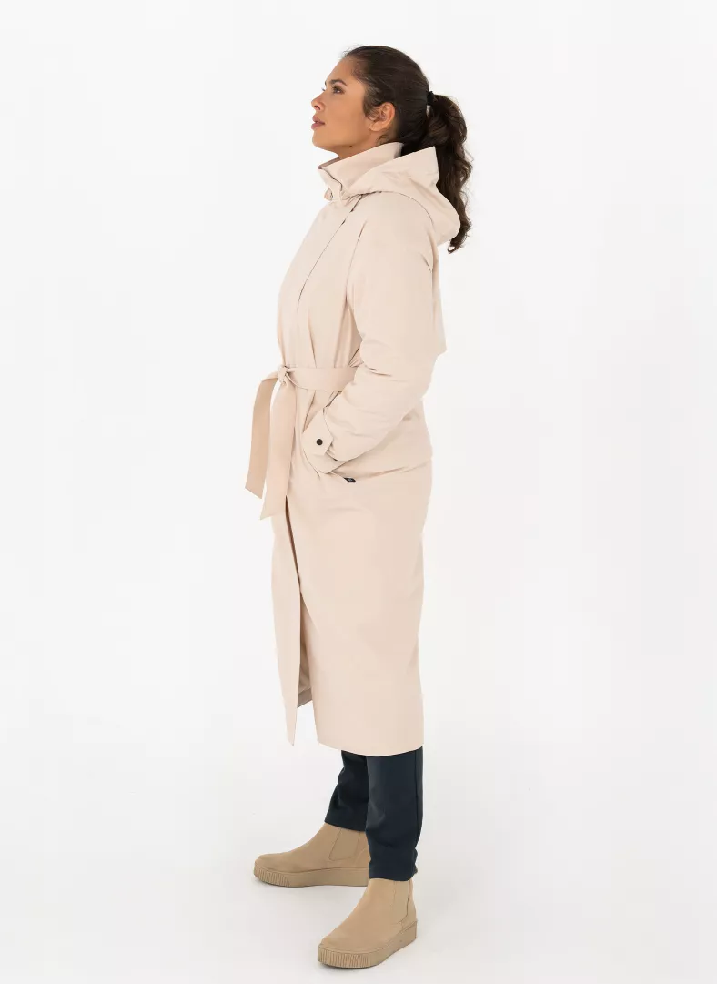 Soe, tuule- ja veekindel Gelu soojustatud mantel on valmistatud vastupidavast ripstop-kangast ja soojustatud taaskasutatud polüestriga. Mantlil on eemaldatav ja reguleeritav kapuuts, lukk ja magnetkinnitus, polsterdatud krae ning reguleeritavad varrukaotsad. Vett hülgav DWR-töötlus on PFC-vaba. Saab kanda erineval viisil, kas eest kõrgelt suletuna või avatuna, laiade revääridega.