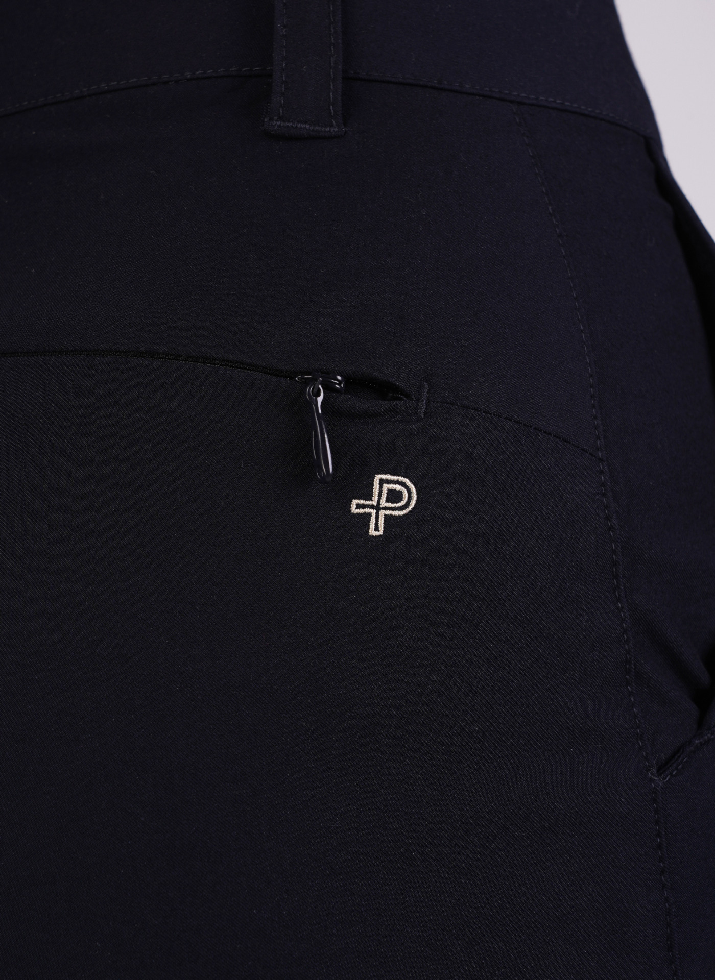 Stiilne ja funktsionaalne! Mitmeotstarbelised naiste spordipüksid on valmistatud kiiresti kuivavast venivast materjalist ja sobivad nii linnas kui ka golfiväljakul või paadis. Lühikesed püksid on klassikalise lõikega vööaasadega, kahe esitasku ja kahe lukuga tagataskuga.